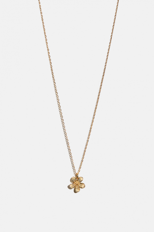 Halsband i 18k guldpläterat äkta silver med texturerade blomma