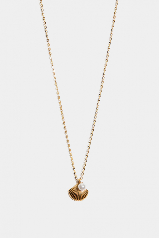 Halsband i 18k guldpläterat äkta silver med hänge av en snäcka och en snäckskalspärla.