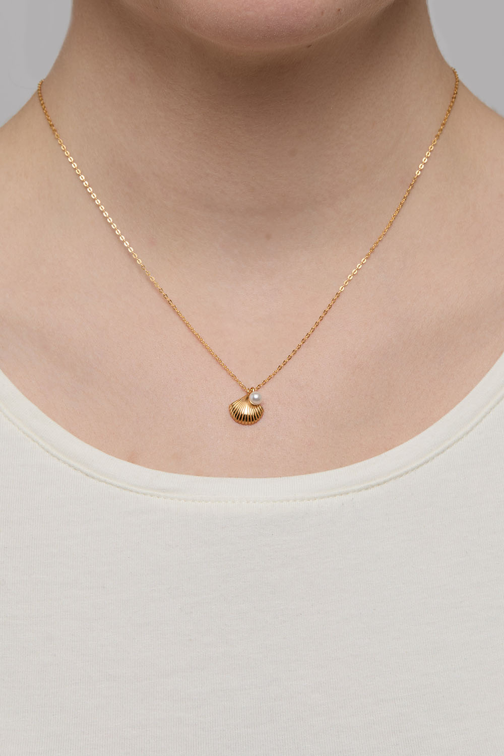 Halsband i 18k guldplläterat äkta silver med snäcka och pärla i gruppen Guldpläterat äkta silver / Guldpläterade halsband hos Glitter (554004392002)