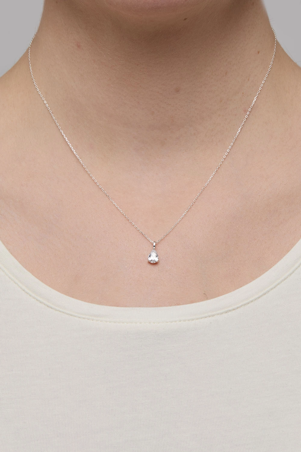Halsband i äkta silver med hänge av en droppformad Cubic Zirconia sten.
