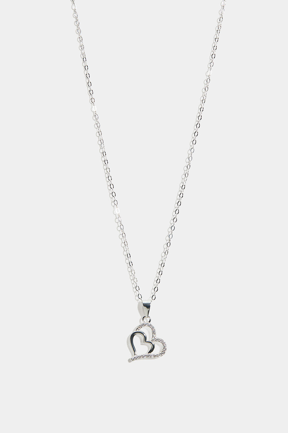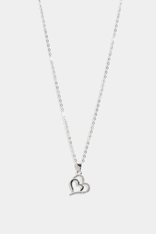 Halsband i äkta silver med tunn kedja och hänge i form av två hjärtan med Cubic Zirconia-stenar.