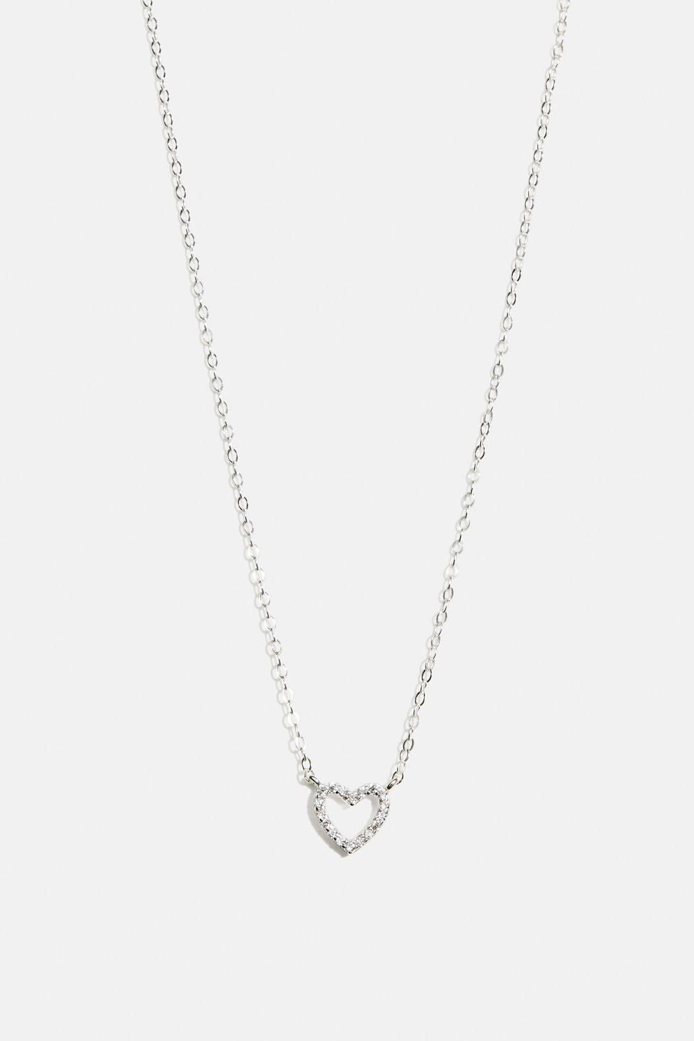 Halsband i äkta silver med tunn kedja och ett hjärta dekorerad med små vita Cubic zirconia-stenar.