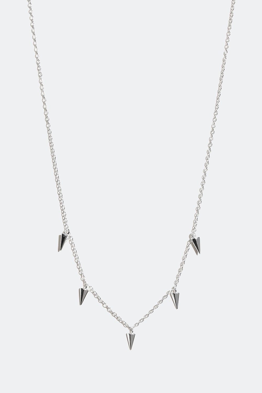 Dekorativt halsband i äkta silver med kedja och fem stilrena hängen av små släta nitar.