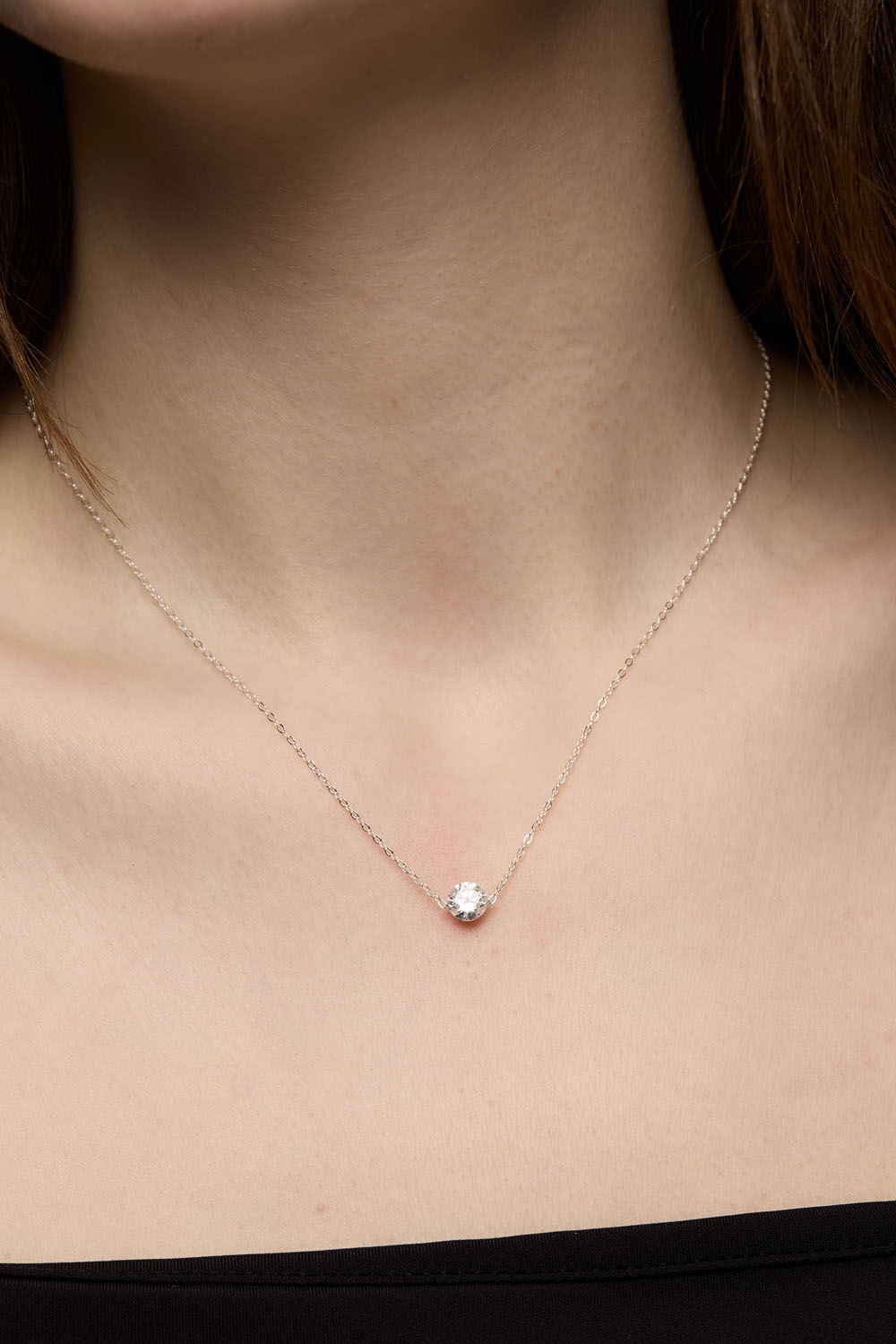 Halsband i äkta silver med tunn kedja med en klar Cubic Zirconia-sten i mitten.