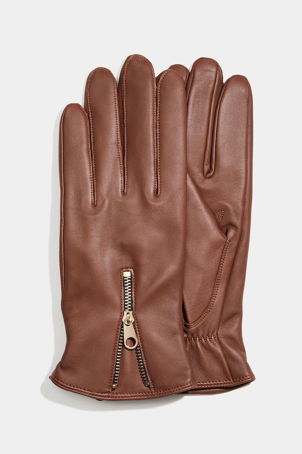 Bruna skinnhandskar med dragkedja i gruppen Accessoarer / Skinnhandskar / Skinnhandskar för dam hos Glitter (1710014490)