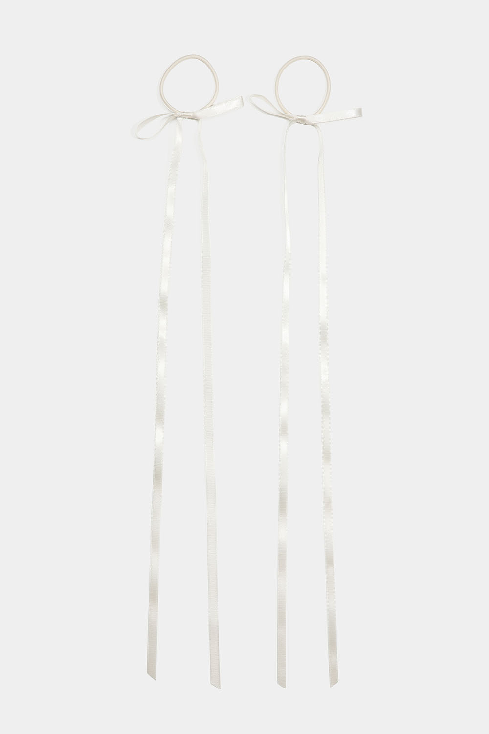 2-pack med vita hårsnoddar som har varsin vit rosett i sidenimitation med långa band.