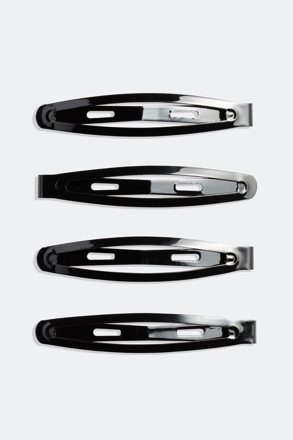Fyra stycken klassiska klick-klack hårspännen i färgen svart. Enkla hårspännen som fungerar vid alla tillfällen!