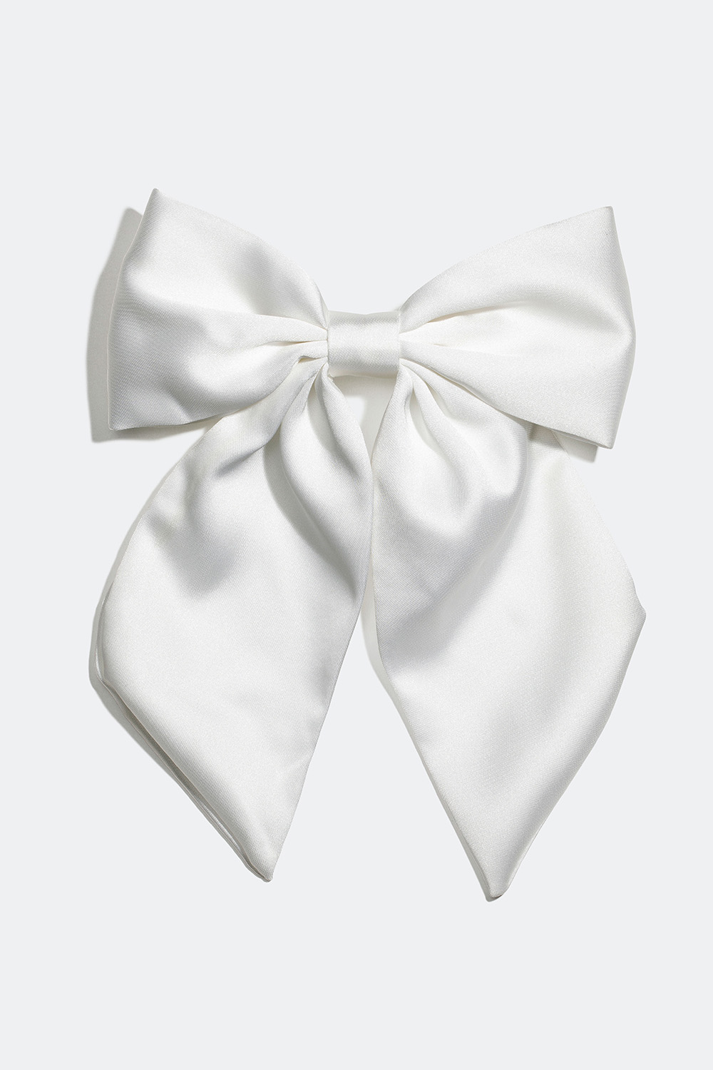 Hårspänne med stor rosett i vit sidenimitation. En dekorativ håraccessoar med glänsande tyg som är en fin detalj till din frisyr samtidigt som den skonsamt håller håret på plats. Detta är den perfekta håraccessoaren till studenten, balen samt sommarens alla fester och bröllop.