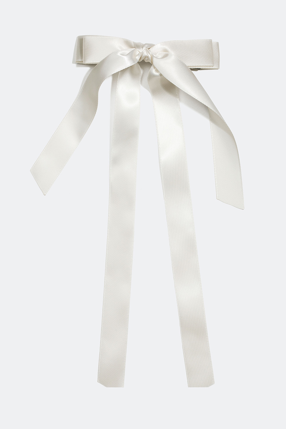 Hårspänne som har en vit rosett i sidenimitation med långa band. Ett dekorativt hårspänne som passar perfekt till exempelvis en fin halvuppsättnig.