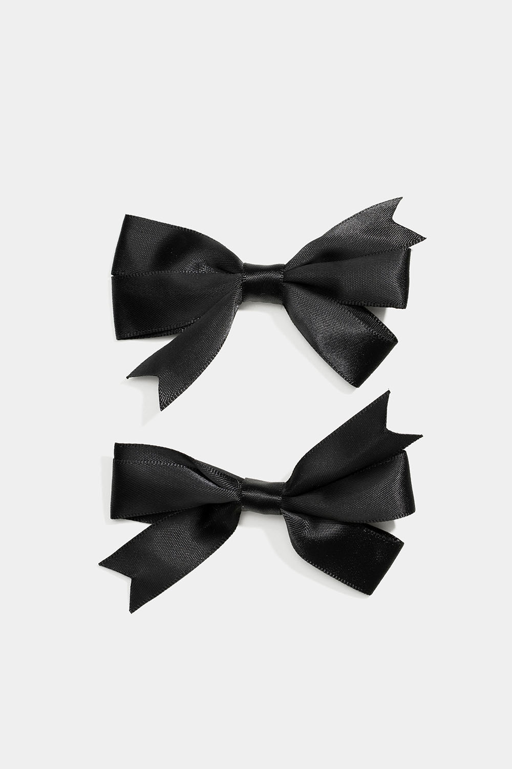 2-pack med hårspännen som är dekorerade med dubbla svarta rosetter.