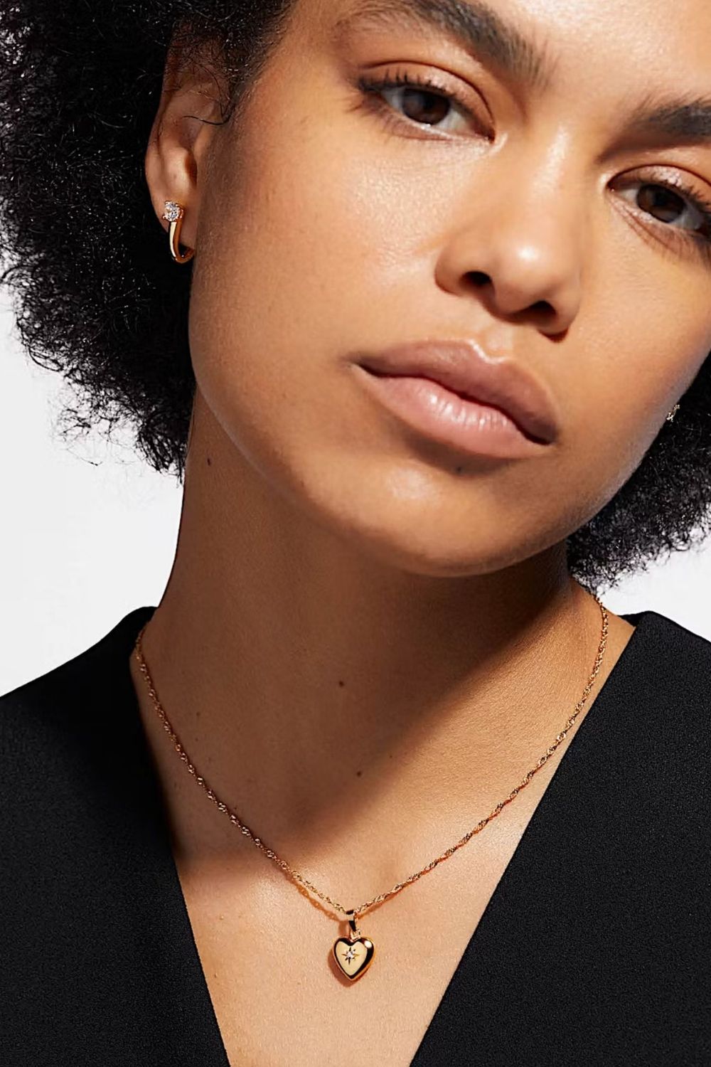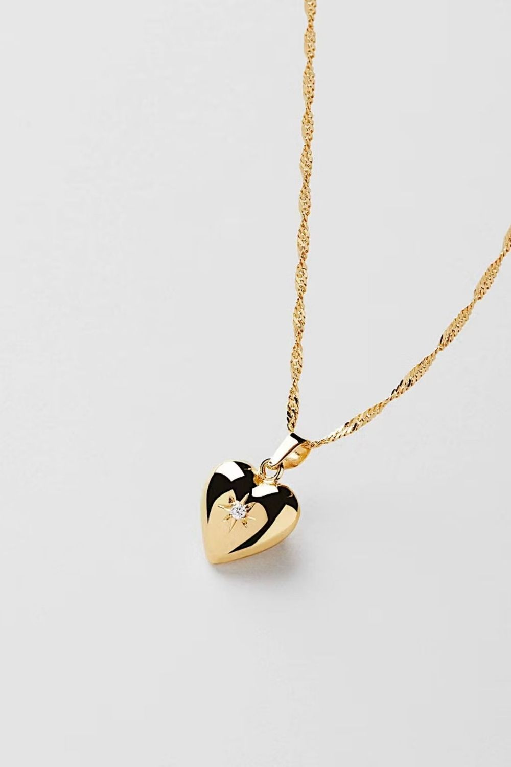 Hjärthalsband med en klar Cubic Zirconia-sten, förgyllt med äkta 24k guld och har en kärna av äkta sterling silver 925.