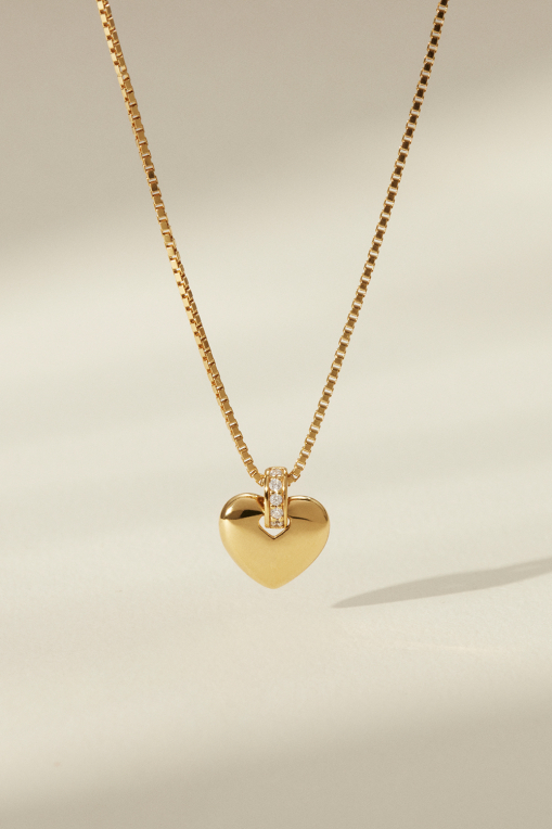 Halsband i boxkedja med ett hjärta, förgyllt med äkta 24k guld och har en kärna av äkta sterling silver 925.