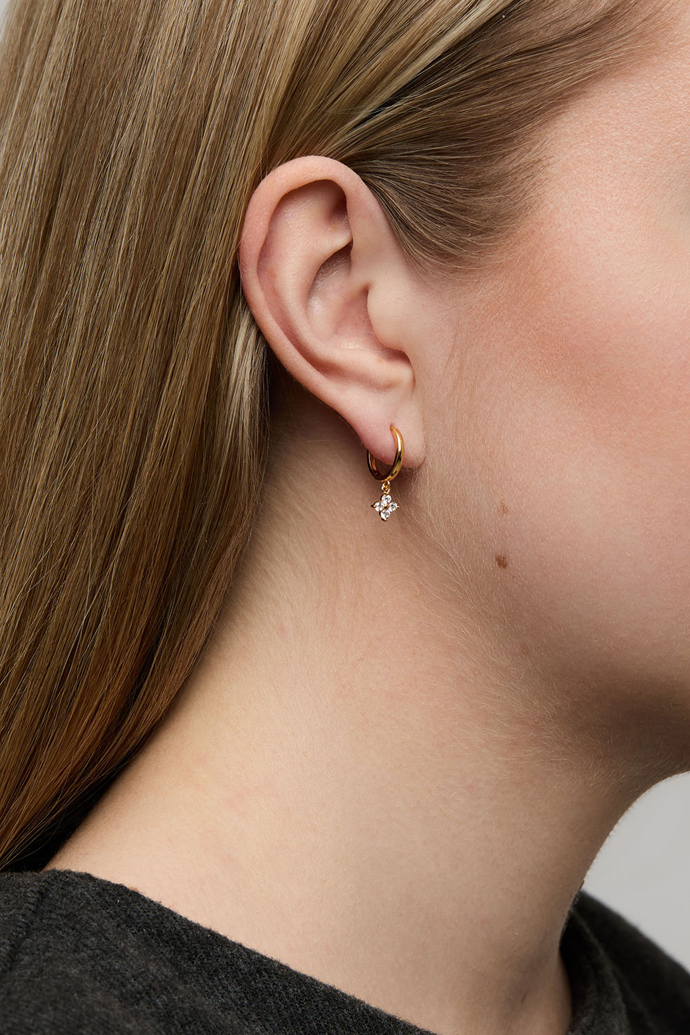 Hoops i 18k guldpläterat äkta silver med Cubic Zirconia-hänge med fyra klara stenar.