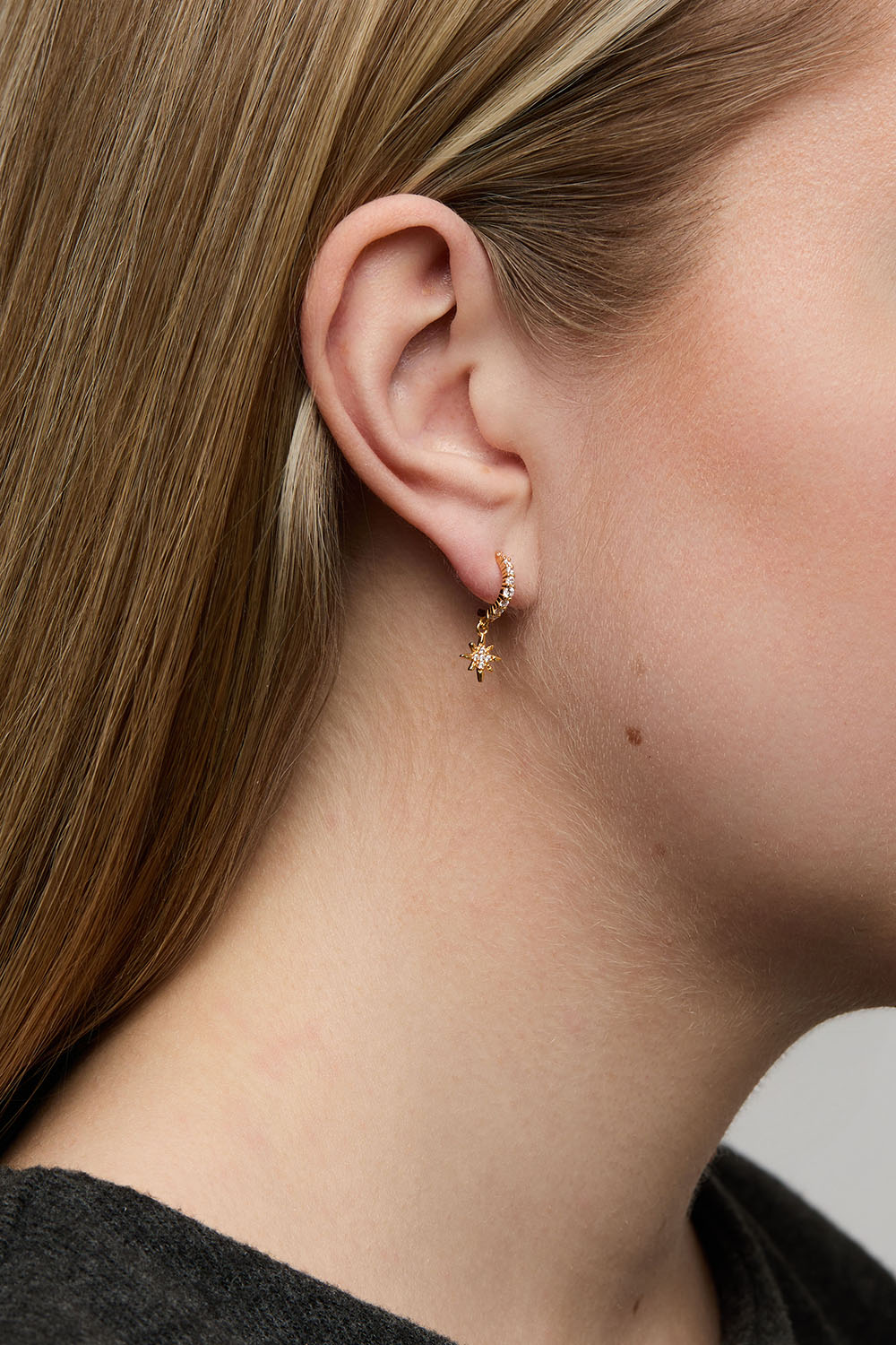 Hoops i 18k guldpläterat äkta silver med små hängande stjärnor och Cubic Zirconia i gruppen Guldpläterat äkta silver / Guldpläterade örhängen hos Glitter (553004722002)
