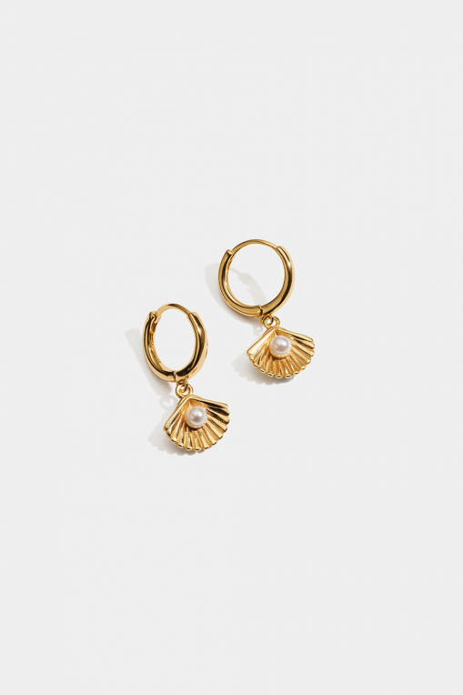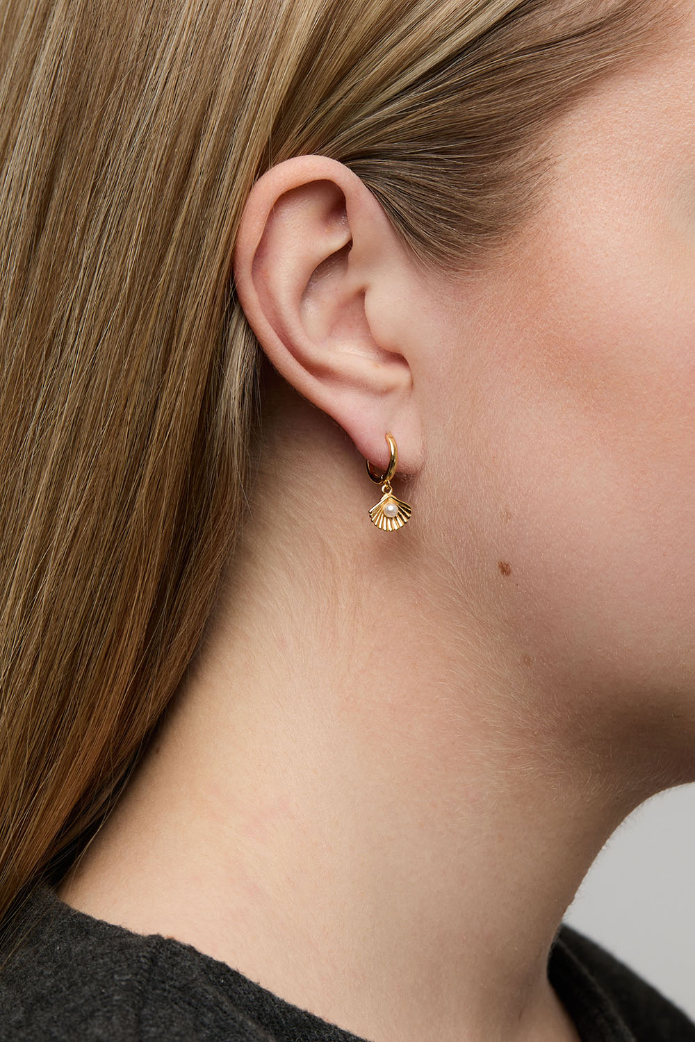 Hoops i 18k guldpläterat äkta silver med hängen av snäckor med snäckskalspärlor.