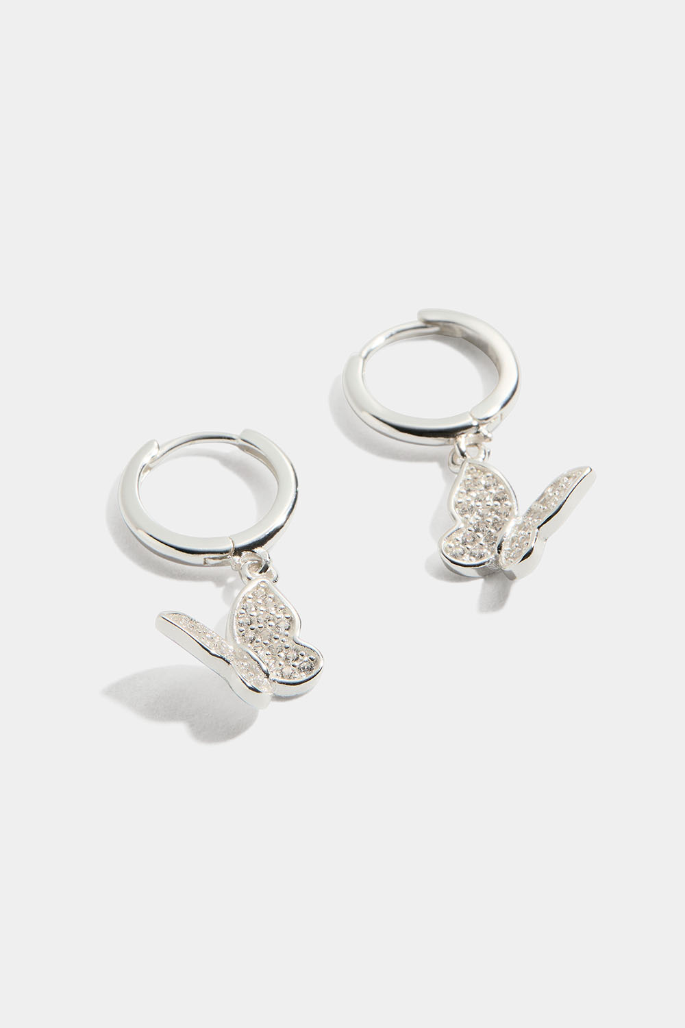 Små hoops i äkta silver med hängande fjärilar dekorerade med Cubic Zirconia stenar.
