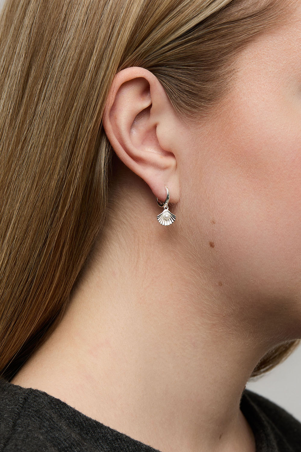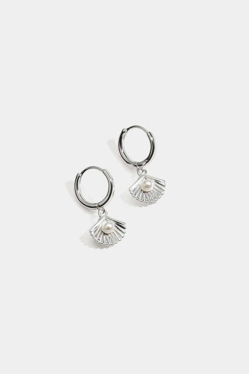 Hoops i äkta silver med hängen av snäckor med snäckskalspärlor.