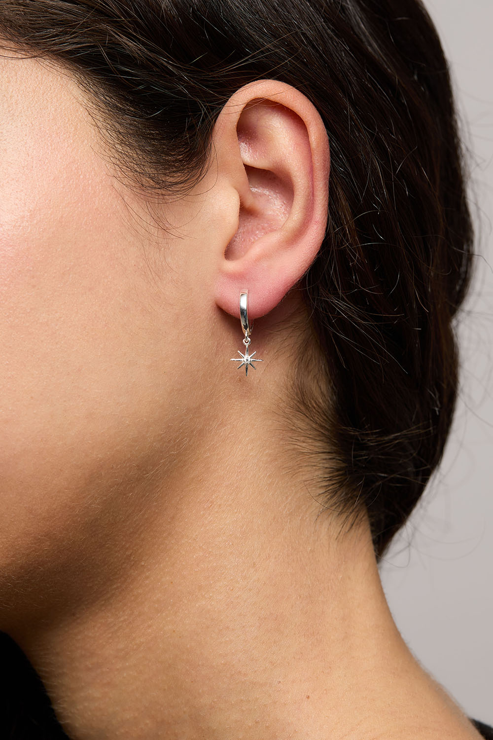 Små hoops i äkta silver med hängande stjärnor dekorerade med Cubic Zirconia-stenar.