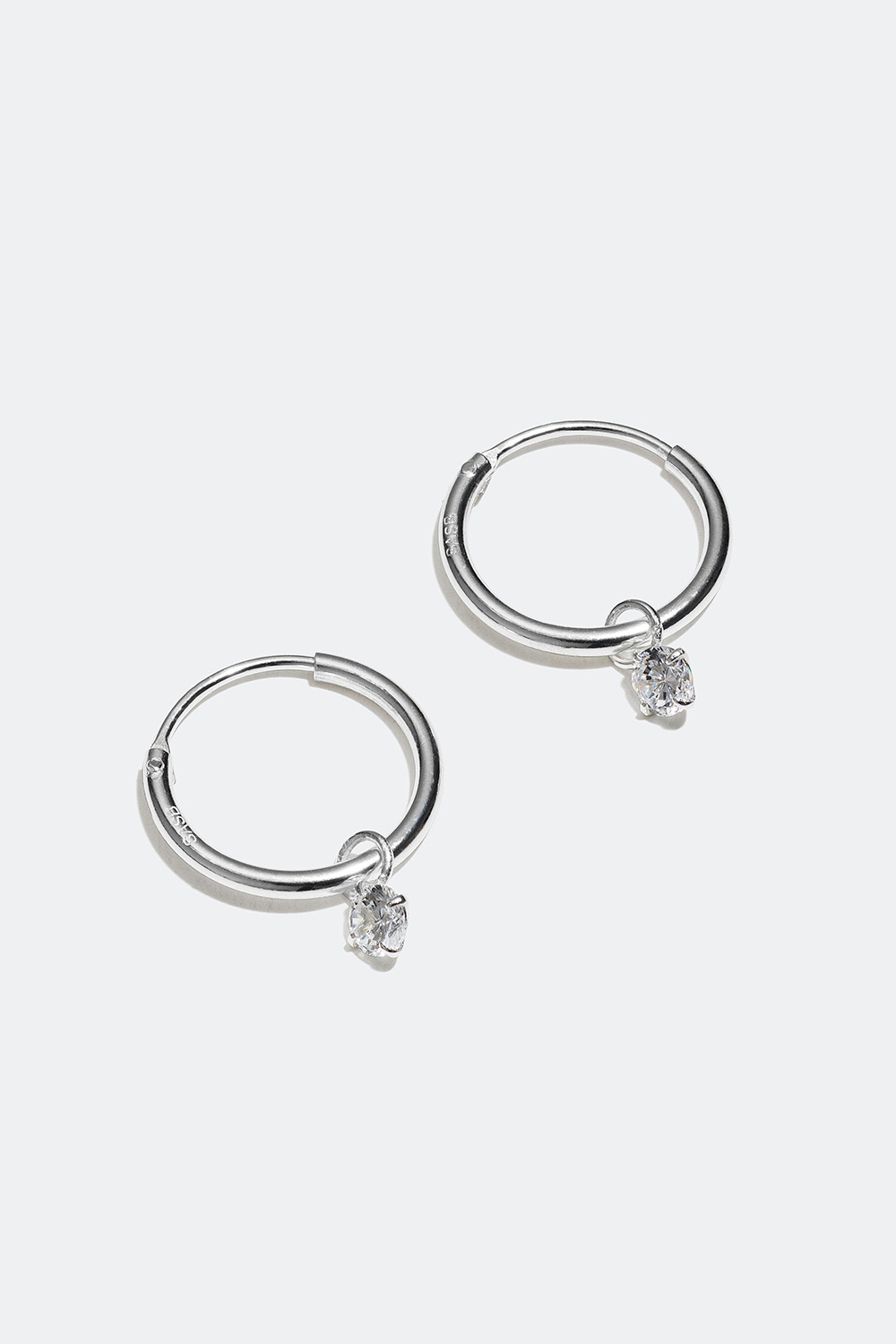 Hoops med glasstenar i äkta silver, 1 cm i gruppen Äkta silver / Silverörhängen / Hoops i äkta silver hos Glitter (553002371001)