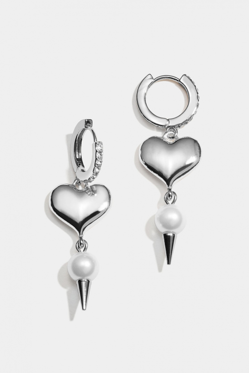 Hoops dekorerade i strass, men hängande hjärta, pärla och nit.