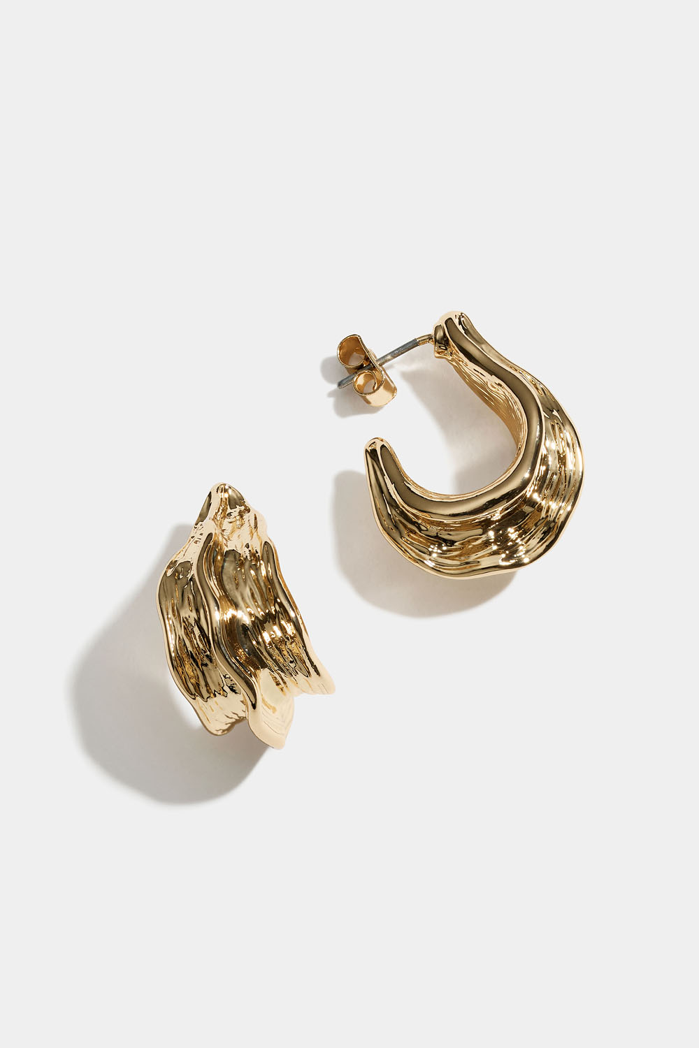 Irreguljära hoops i organiska former, i guldfärgad metall.