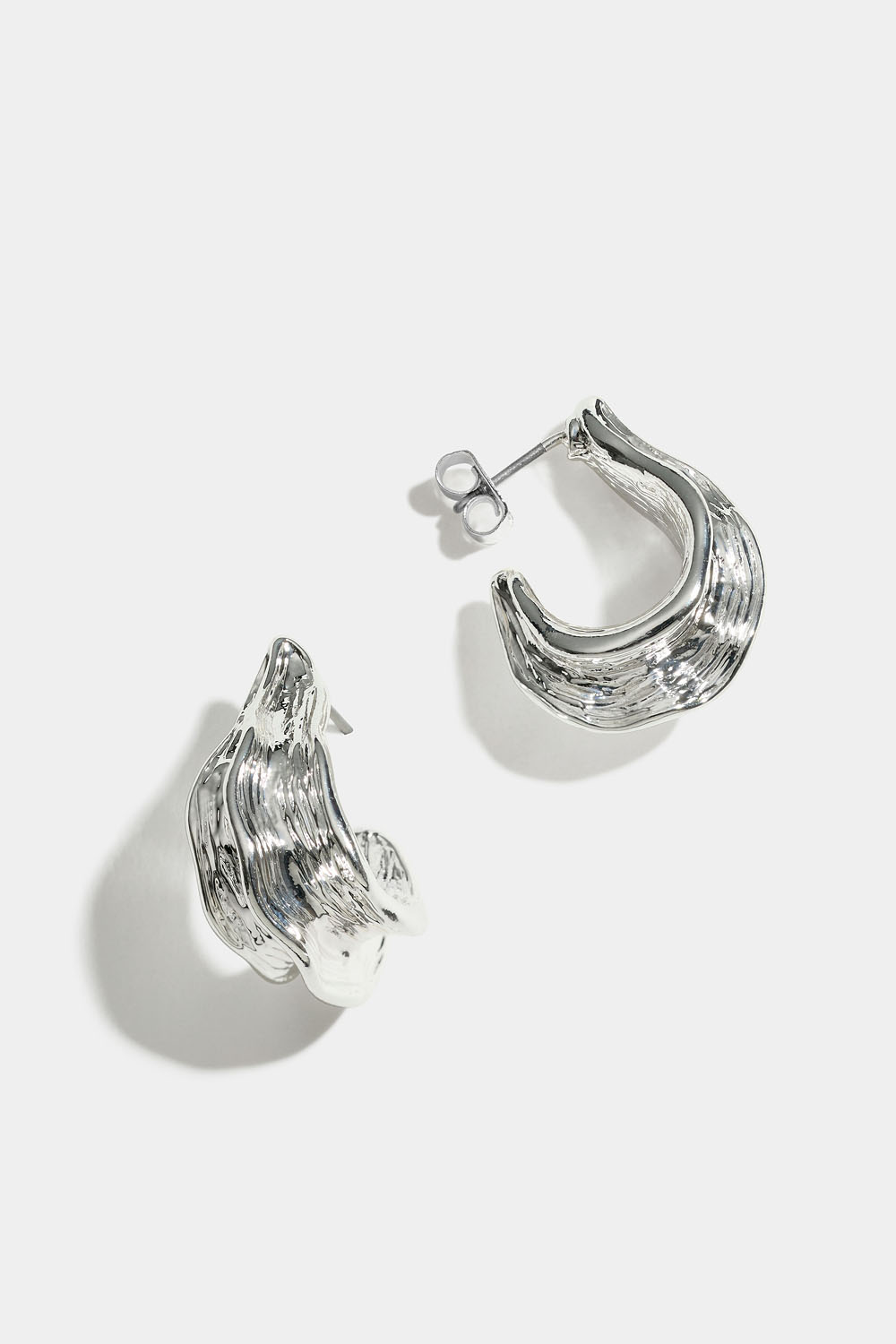 Irreguljära hoops i organiska former, i silverfärgad metall.