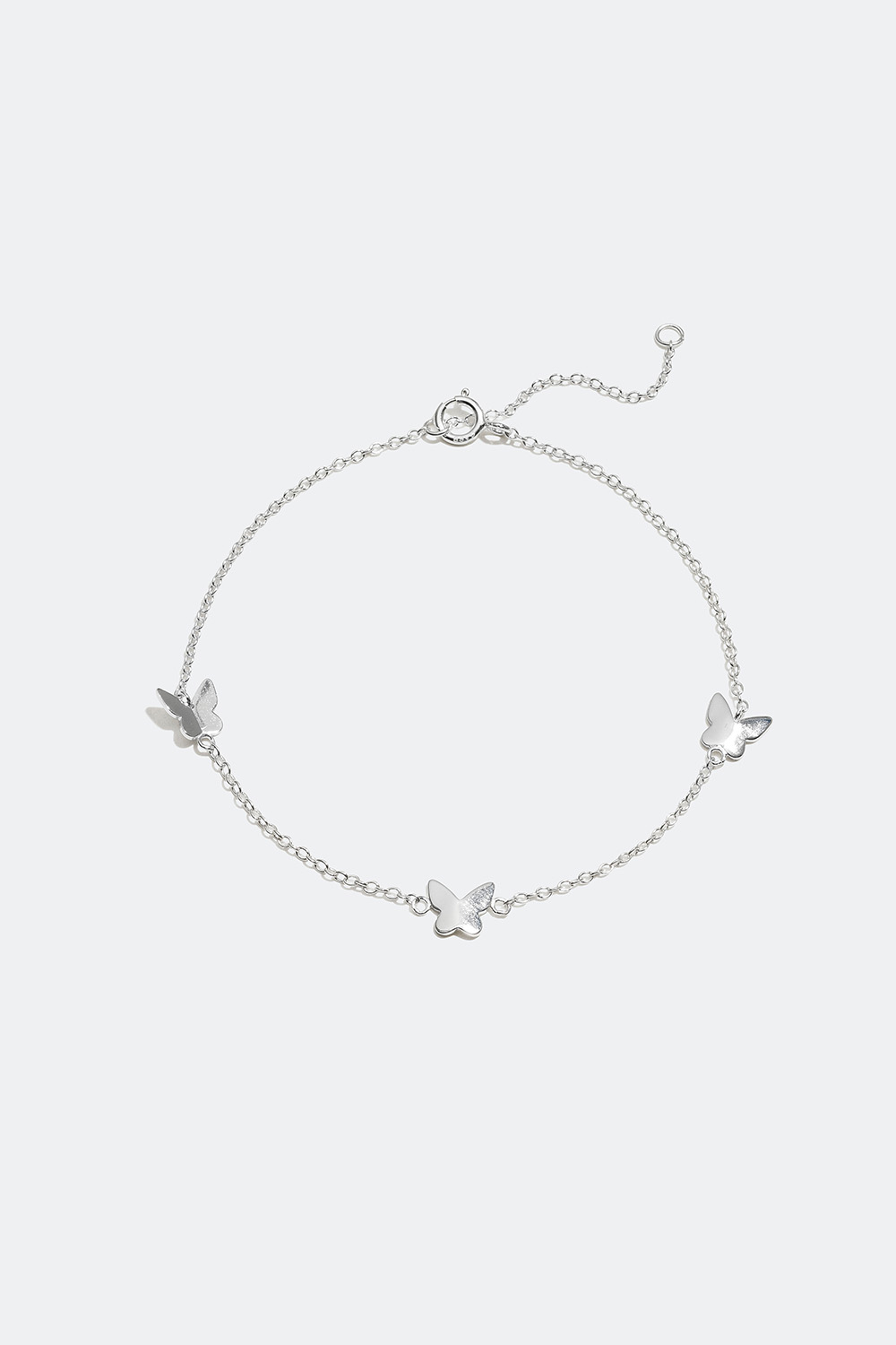 Kedjearmband i äkta silver med tunn länk som är utsmyckad med tre små fjärilar. Ett dekorativt armband som passar perfekt till både vårens och sommarens alla tillfällen.