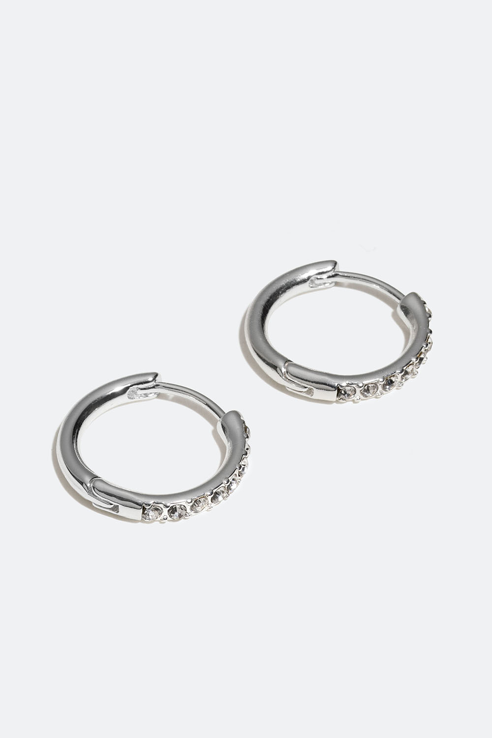 Små hoops som är dekorerade med klara glasstenar framtill. Ett par perfekta everyday örhängen med skimrig detalj.