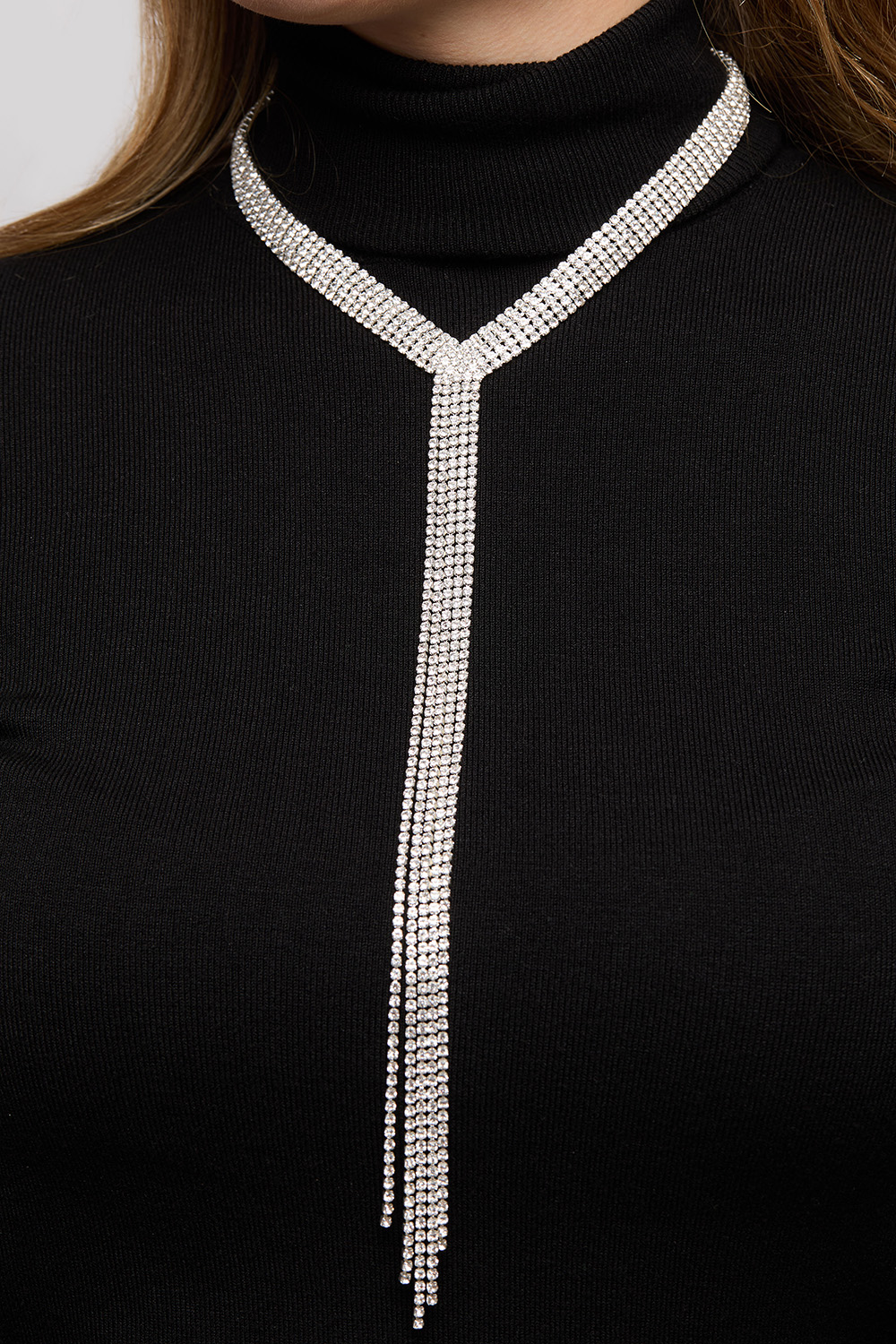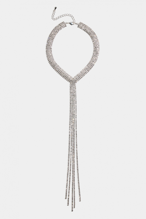Brett strasshalsband i lariat-stil med hängande länkar.