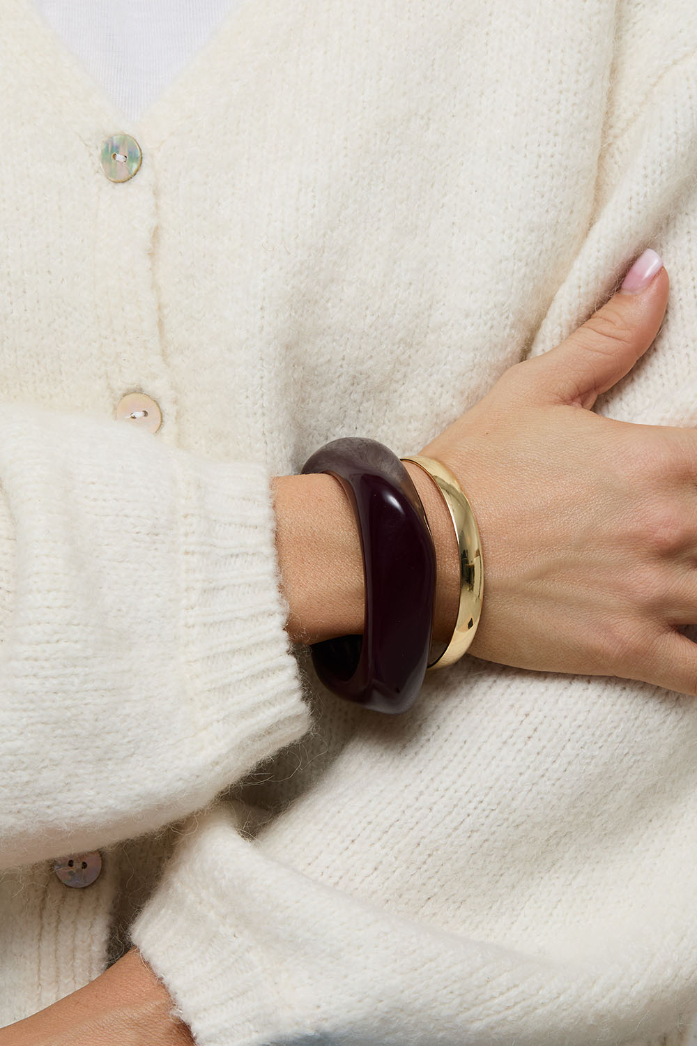 2-pack med en chunky lila bangle och en tunn bangle i guldfärgad metall.