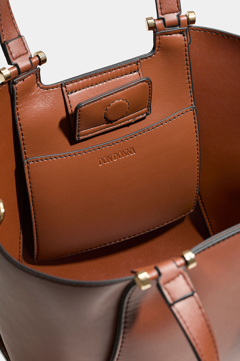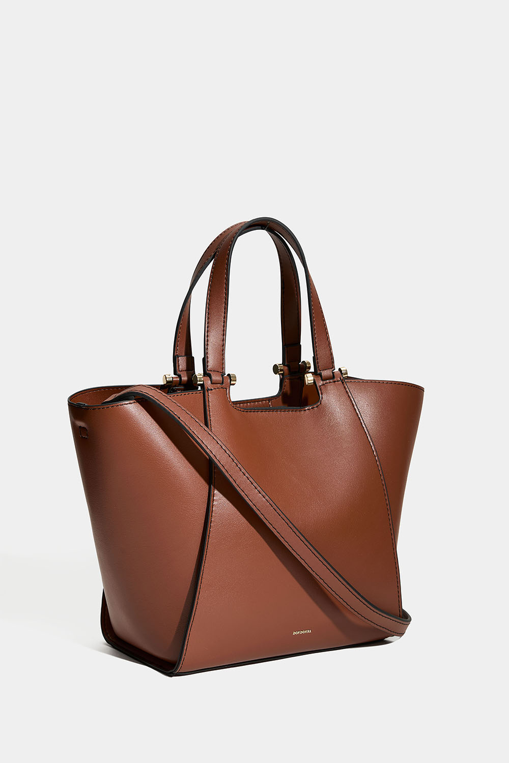 Liten brun tote bag från Don donna i läderimitation. En stilren väska med dubbla smala handtag och en avtagbar längre axelrem. Väskan har ett stort fack so man kan välja att knäppa ihop sidorna av väskan för en smalare passform.