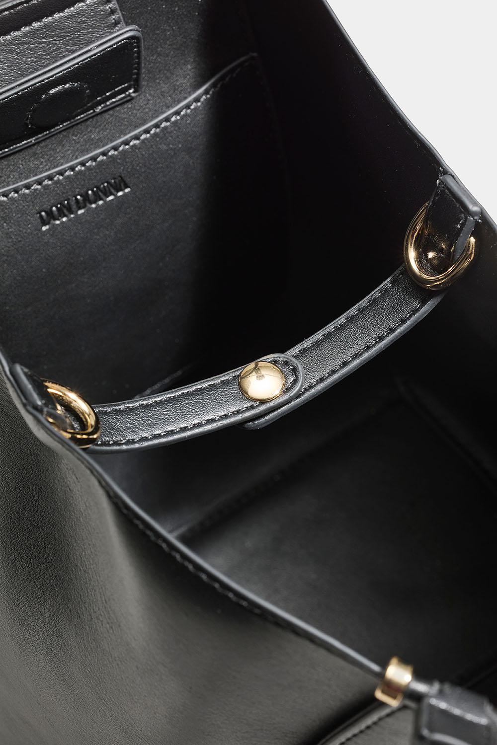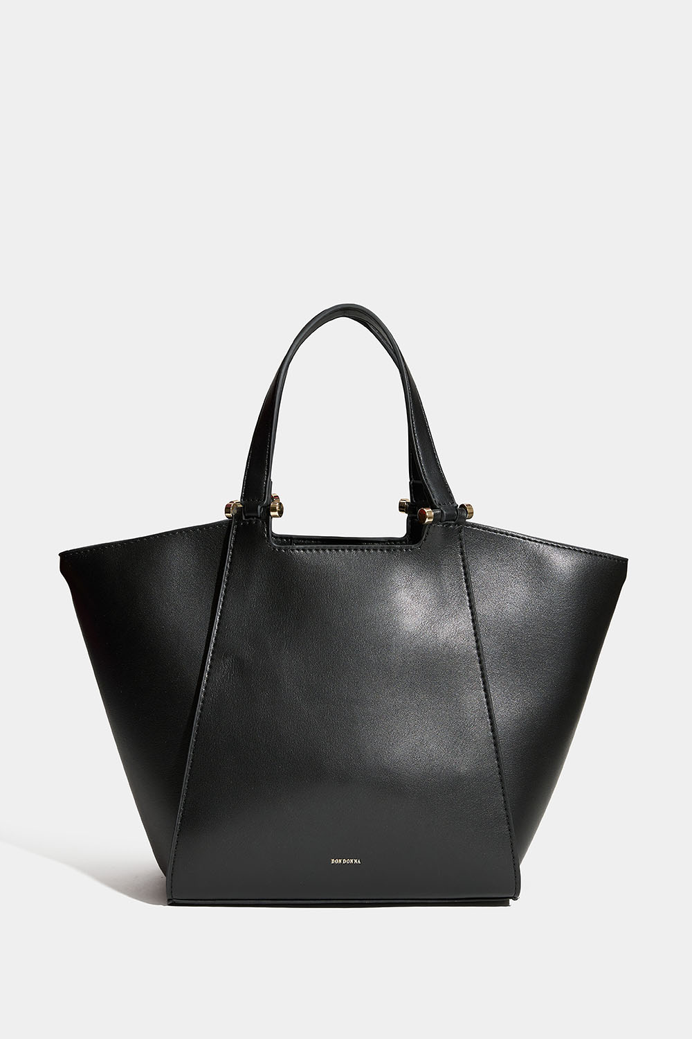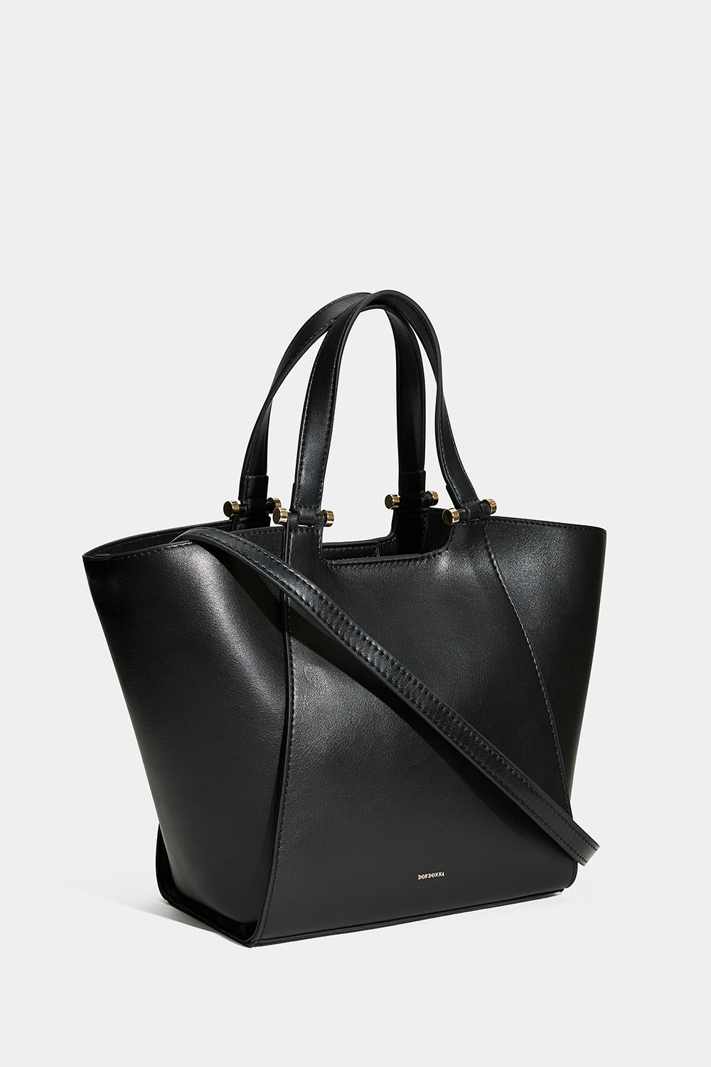 Liten svart tote bag från Don donna i läderimitation. En stilren väska med dubbla smala handtag och en avtagbar längre axelrem. Väskan har ett stort fack so man kan välja att knäppa ihop sidorna av väskan för en smalare passform.
