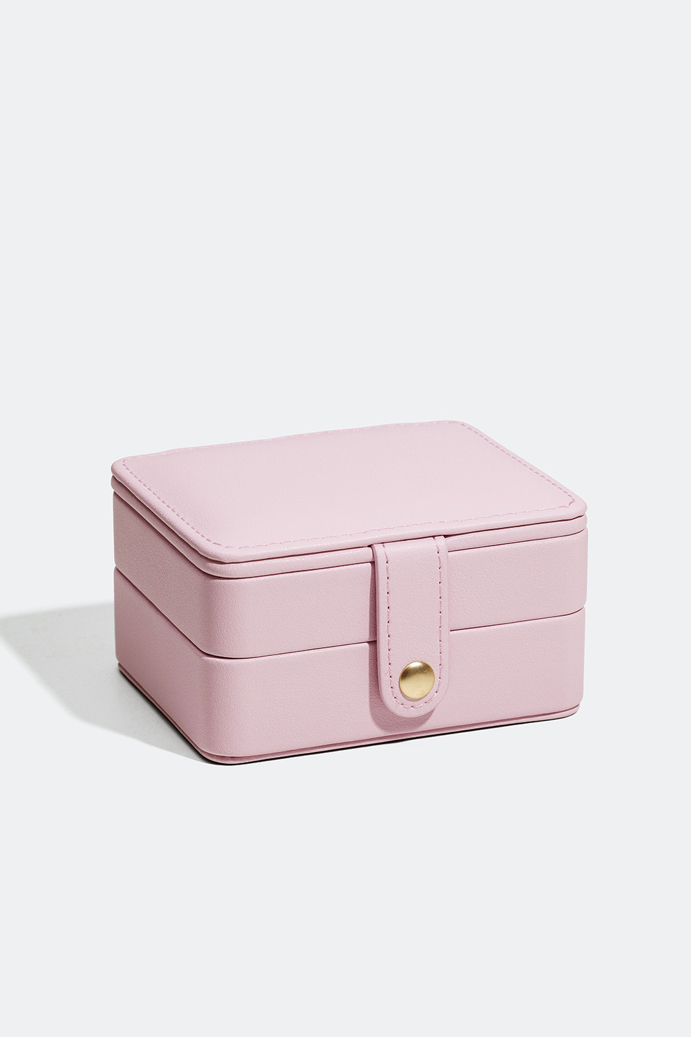 Ett smart litet reseskrin i rosa läderimitation med ett knapplås, spegel och en insida av sammet. Skrinet är uppdelat i två våningar med flera olika typer av förvaring och kommer med hållare för örhängen, halsband, armband och ringar. Perfekt storlek för dina viktigaste och mest använda smycken, både hemma och på resande fot. Ett stilrent smyckeskrin med minimalistisk design som även passar som en snygg inredningsdetalj och gåva att ge bort.