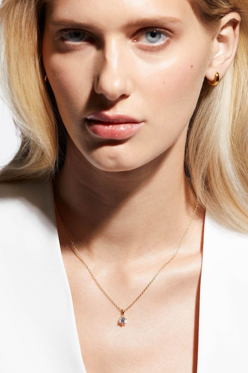 Halsband med en klar Cubic Zirconia-sten, förgyllt med äkta 24k guld och har en kärna av äkta sterling silver 925.