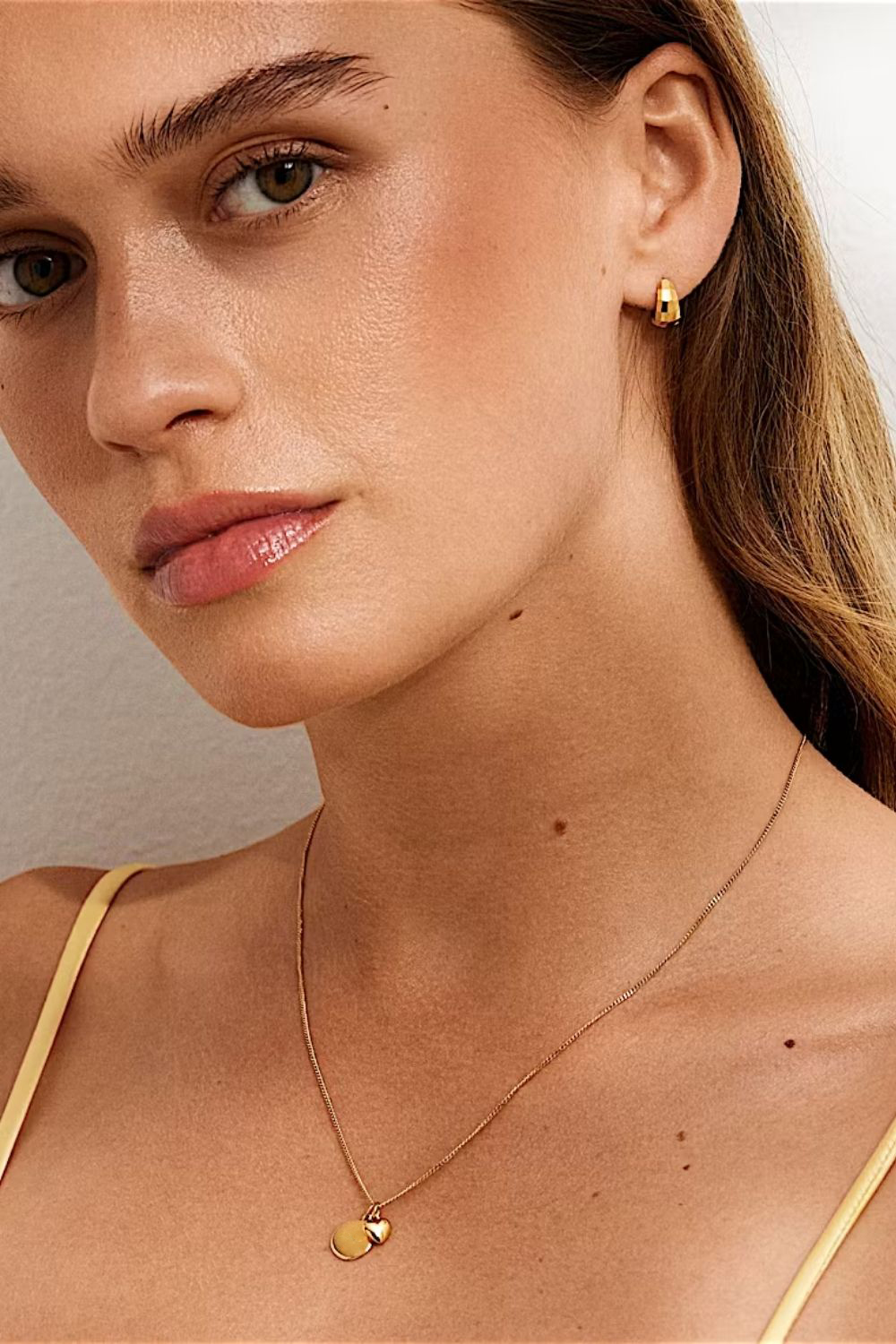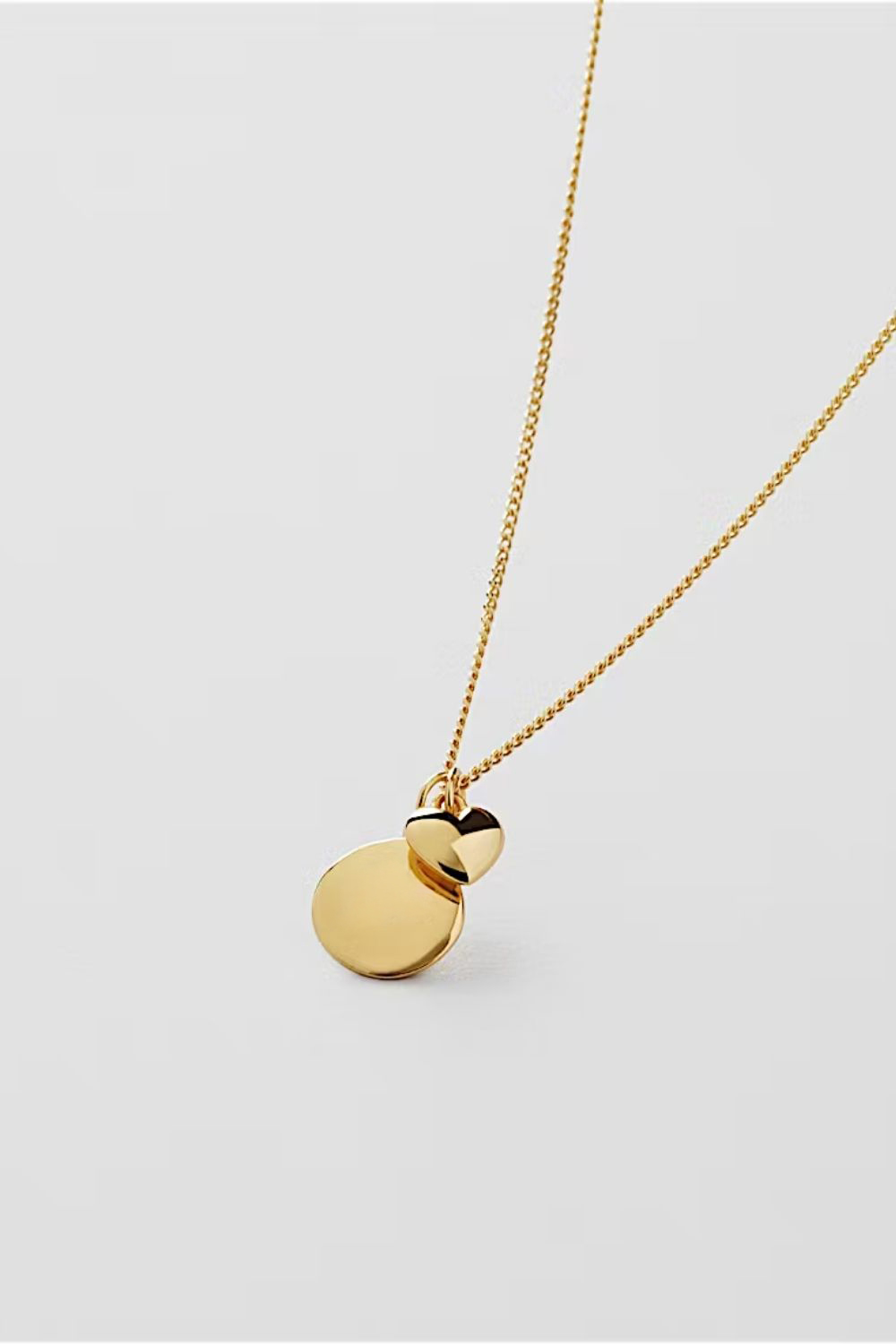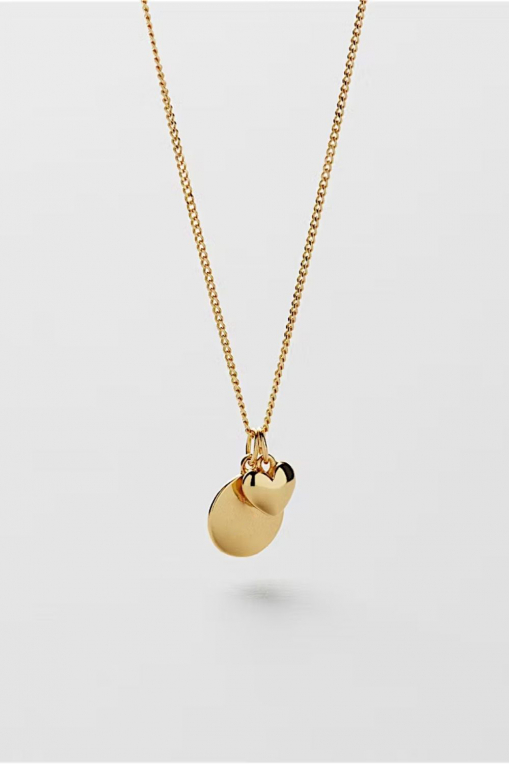 Halsband med en rund bricka och ett puffigt hjärta, förgyllt med äkta 18k guld och har en kärna av äkta sterling silver 925.