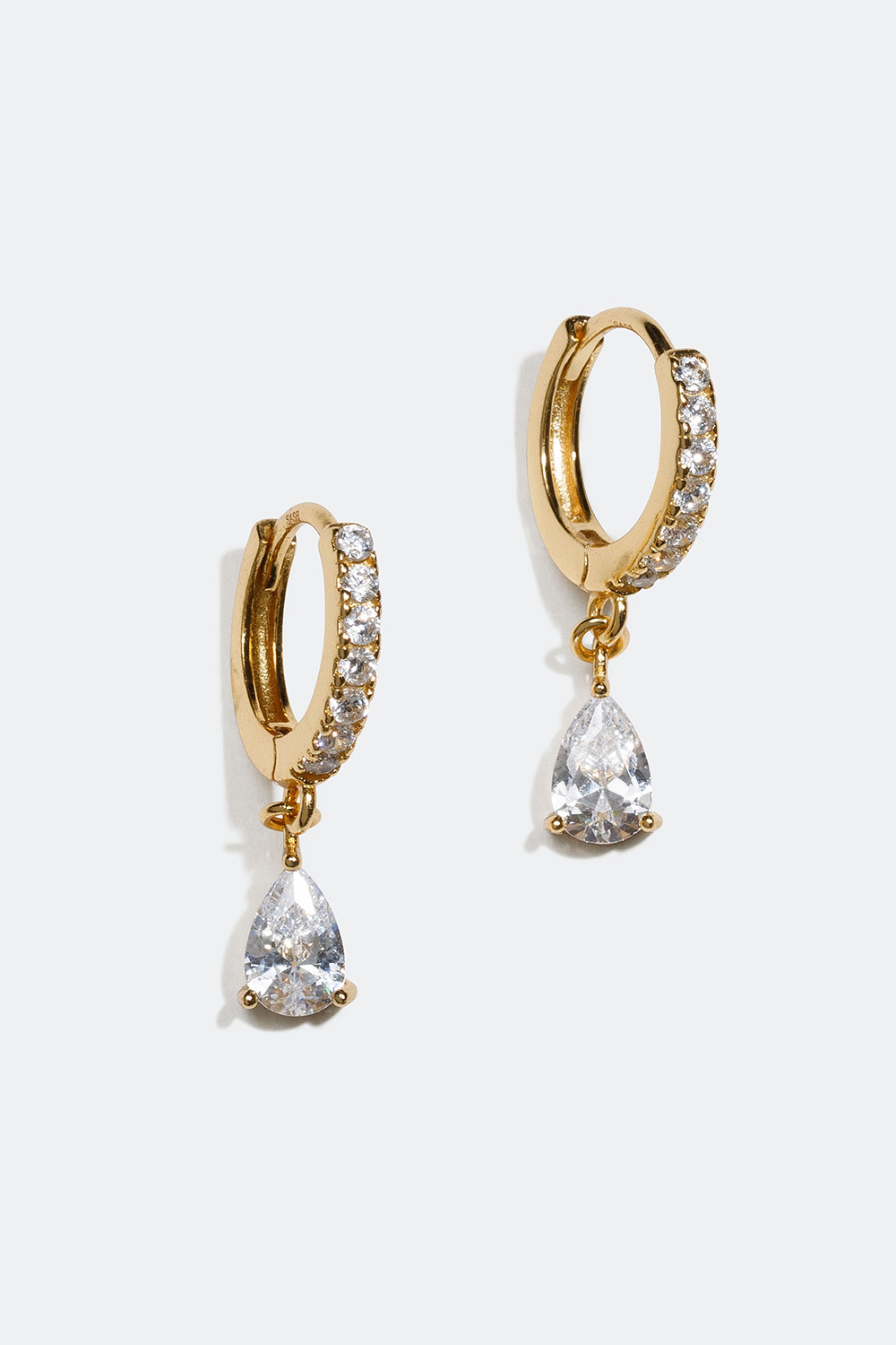 Mini hoops förgyllda med 18k guld och vita droppformade stenar i gruppen Guldpläterat äkta silver / Guldpläterade örhängen hos Glitter (553002362002)