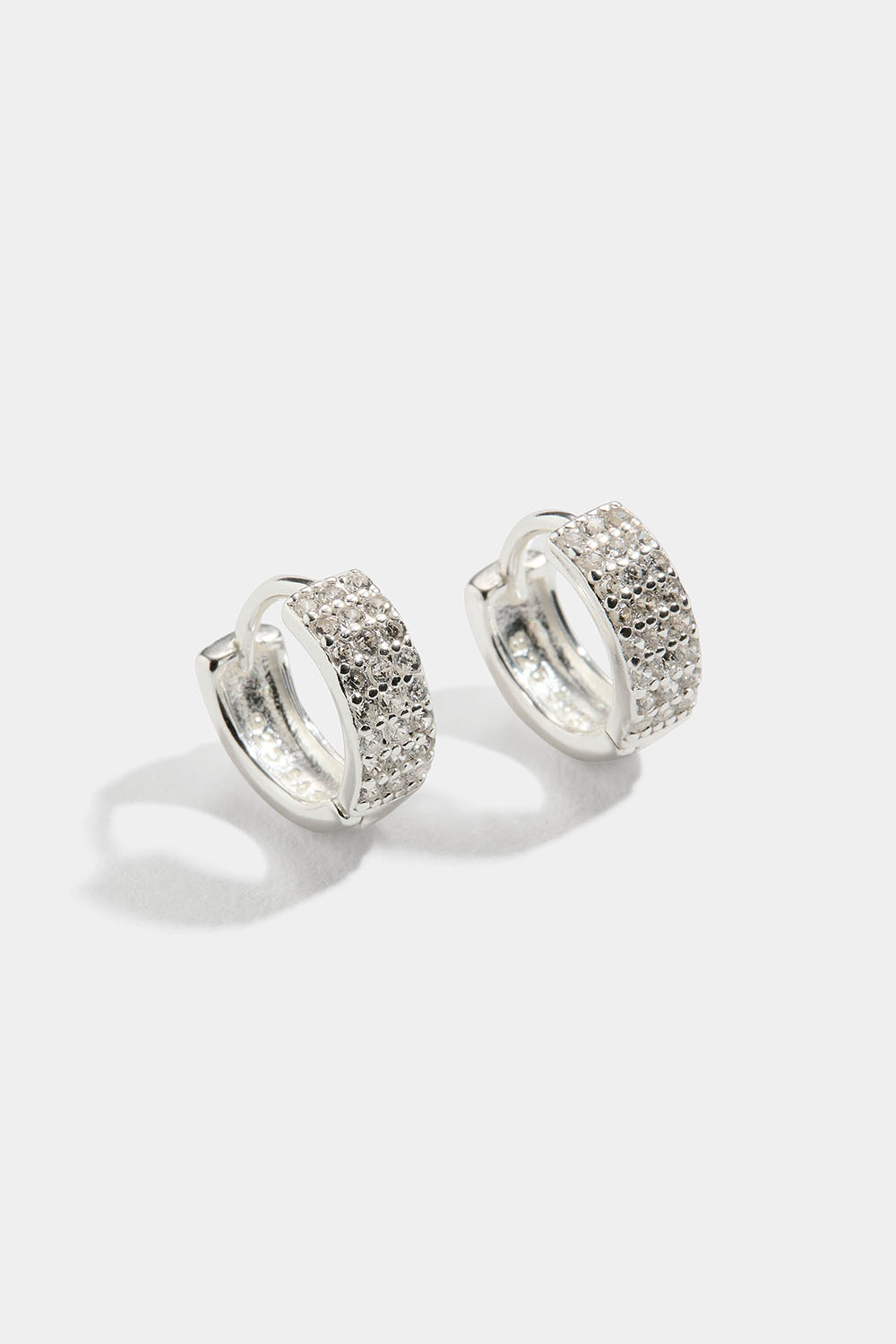 Mini hoops i äkta silver med små Cubic Zirconia stenar längs framsidan i tre rader.