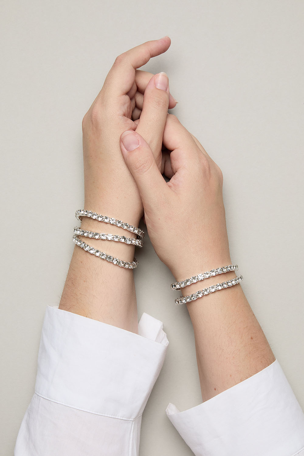 Elastiska strassarmband dekorerade med runda glasstenar. Kommer i fem pack.