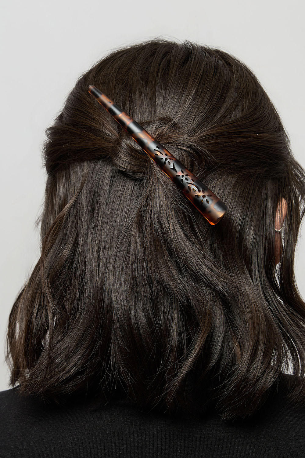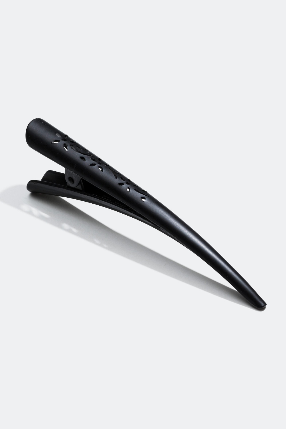 Näbbklämma, perfekt att sätta upp hela eller halva håret med. Ytan på klämman är matt och har ett stansat mönster på ovansidan. Klämman har en design som flöjer formen på huvudet och piggar på insidan som gör att håret fäster bättre.