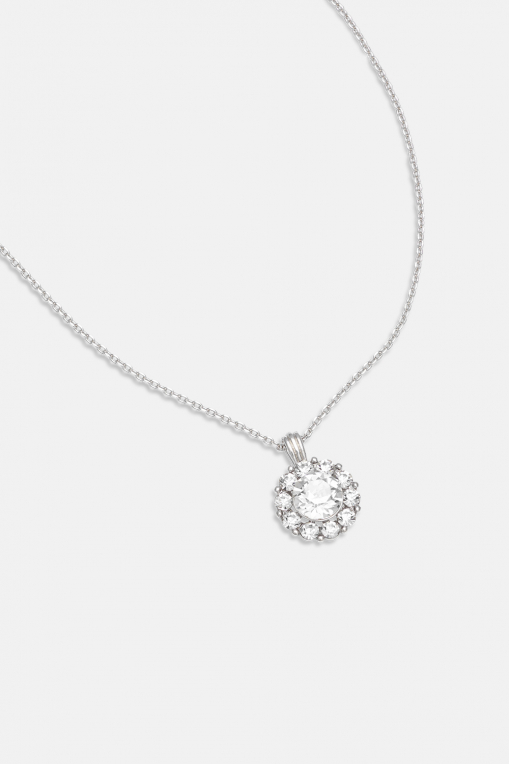 Exquisite design makes this truly versatile and suitable for any style and occasion. Crystal offers a centrepiece of a multifaceted, clear, crystal framed by smaller stones on a silver chain. An instant favourite.