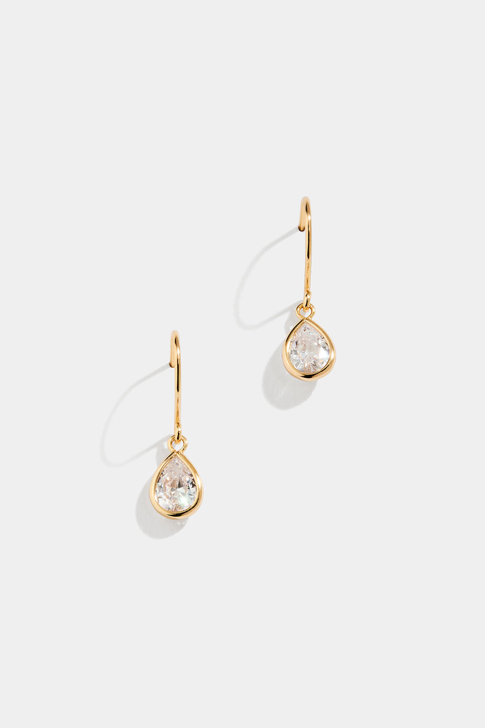 Örhänge i 18k guldpläterat äkta silver med en större, infattad, hängande Cubic Zirconia-sten.