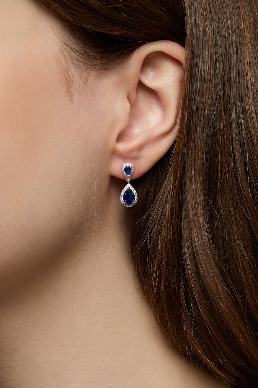 Örhängen i 18 äkta silver med blåa droppformade Cubic Zirconia