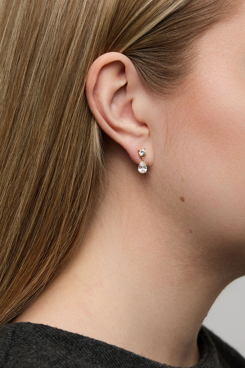 Örhängen i 18k guldpläterat äkta silver med runda och droppformade Cubic Zirconia stenar.
