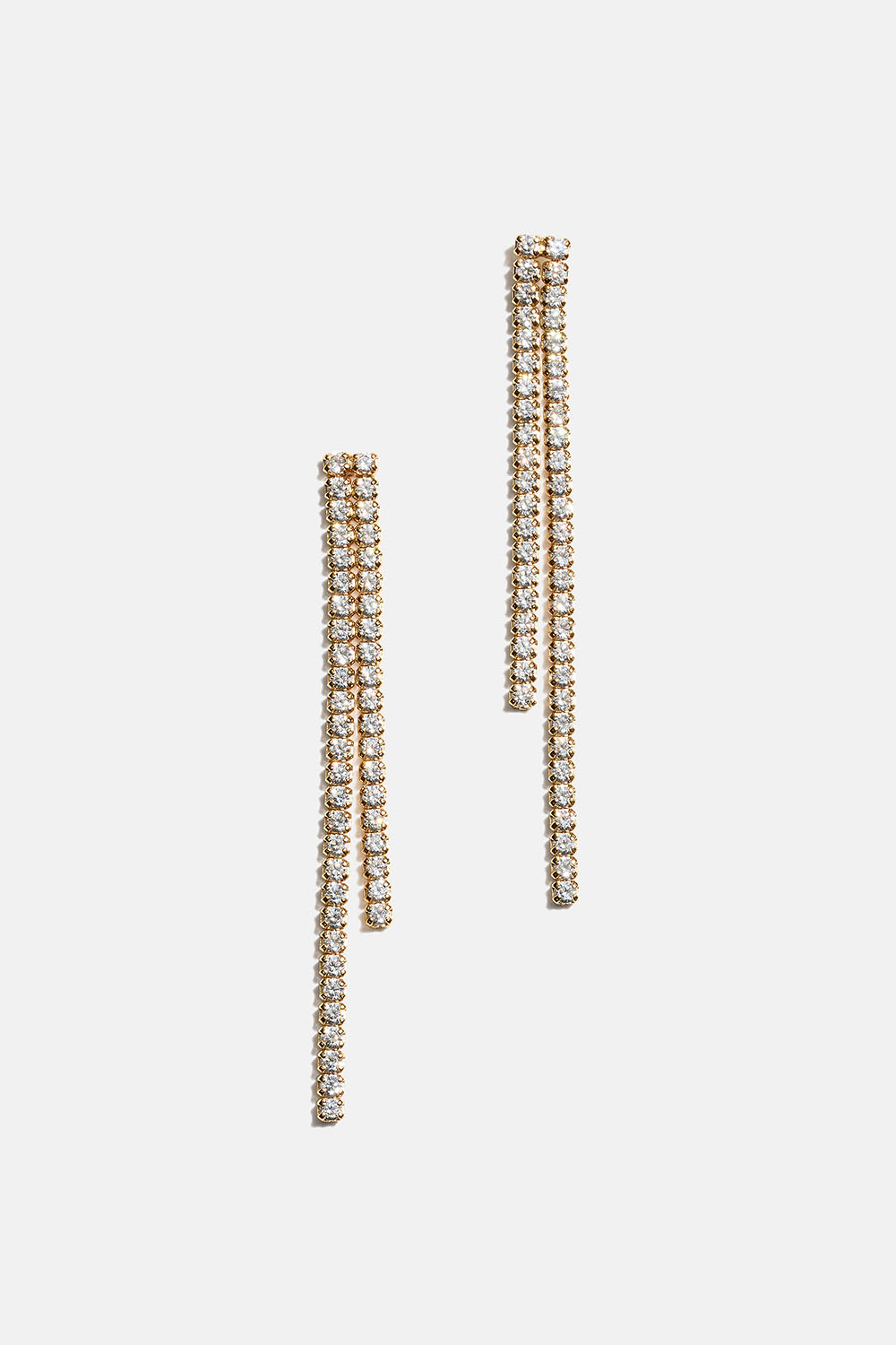 Örhängen i 18k guldpläterat äkta silver med två länkar i olika längd dekorerade med Cubic Zirconia-stenar.