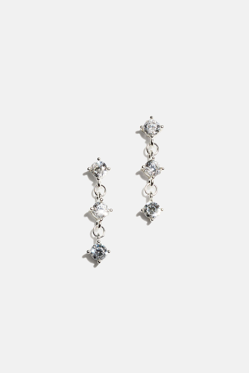 Örhängen i äkta silver med tre runda hängande Cubic Zirconia-stenar.
