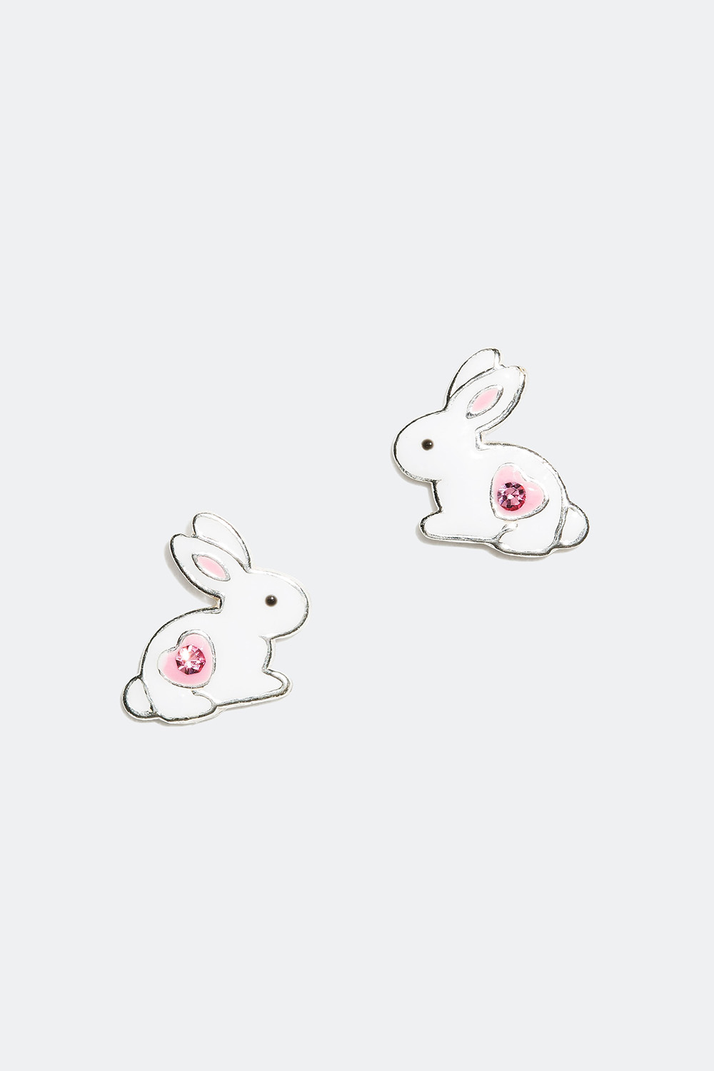 Studs i äkta silver med motiv av vit kanin med rosa hjärta.