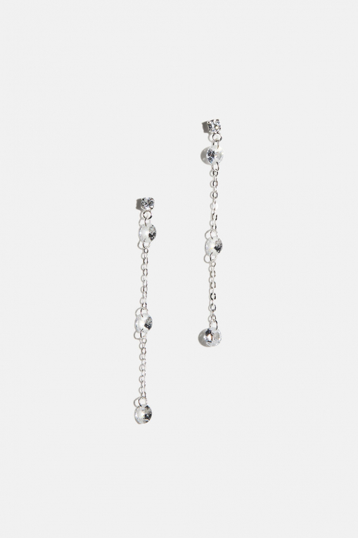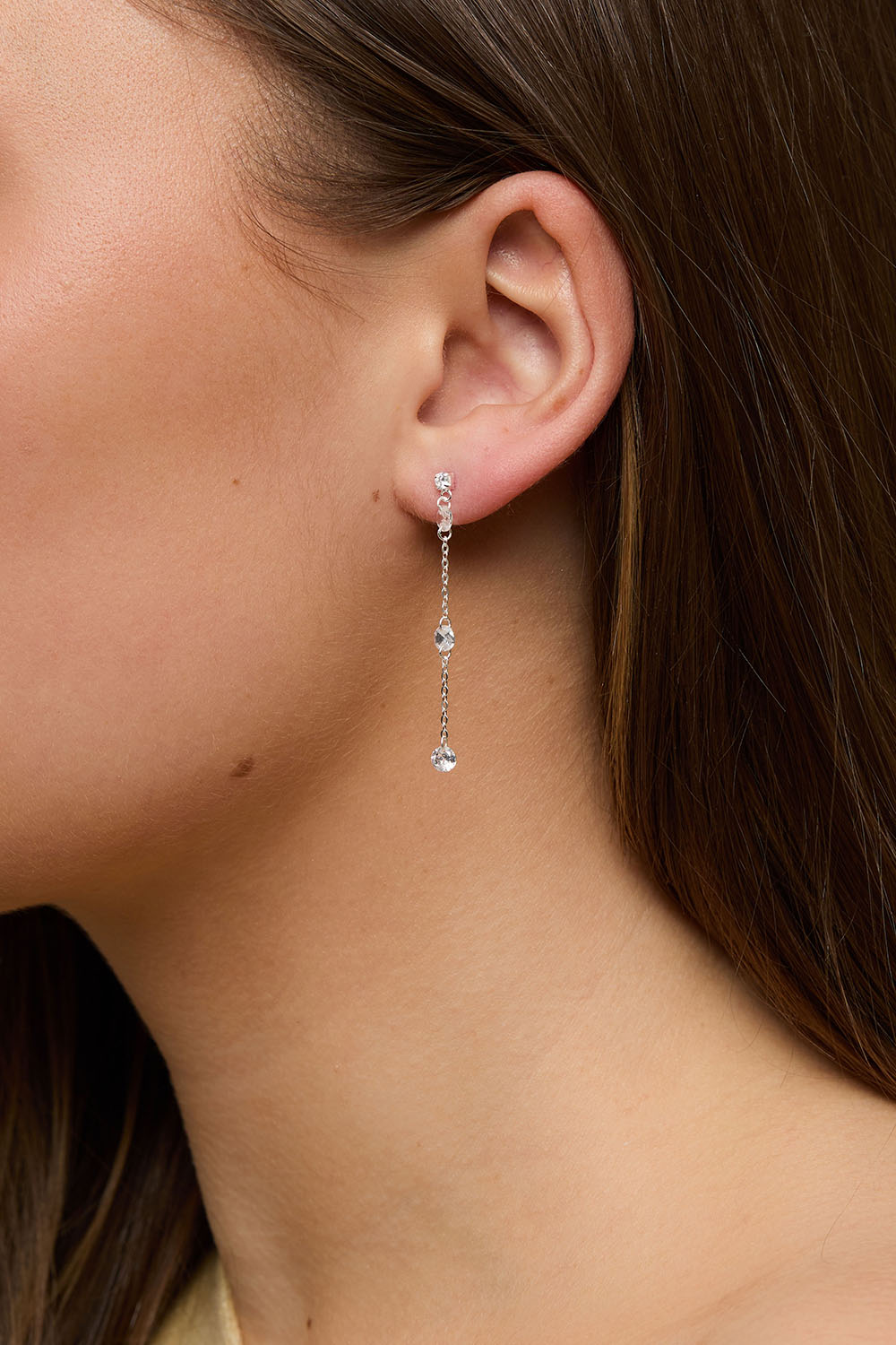 Örhängen i äkta silver med tre runda hängande Cubic Zirconia-stenar.
