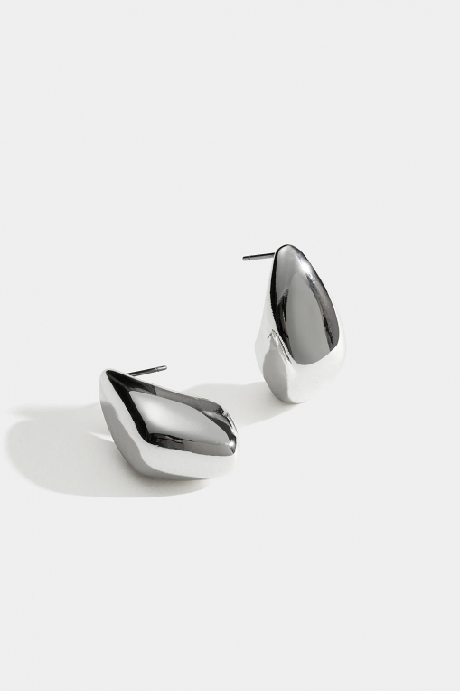 Örhängen i glansig silverfärgad metall i kantig droppform