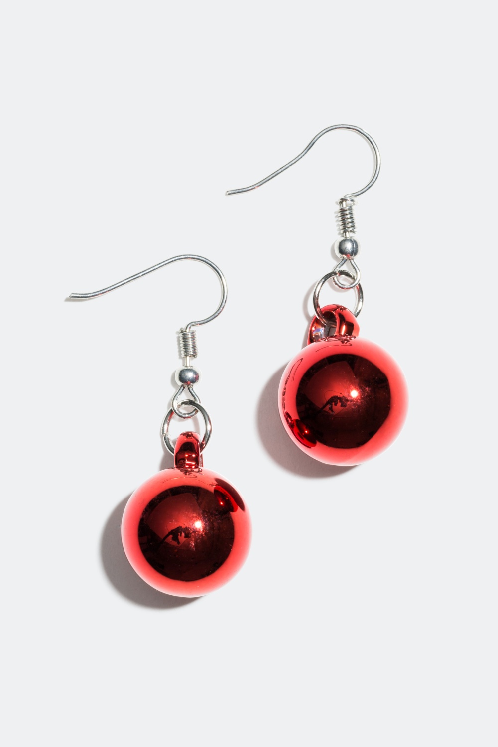 Örhängen, julkula - Ett par metallörhängen med ett hänge i form av en julkula.