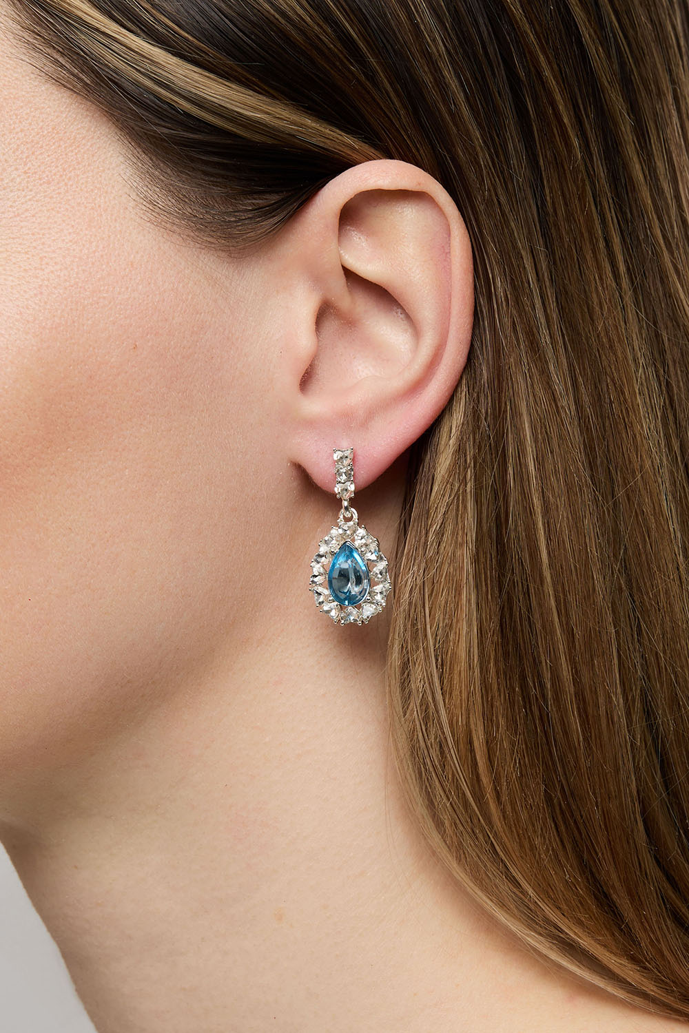 Örhängen med droppformade hängen med klara och rosa glasstenar